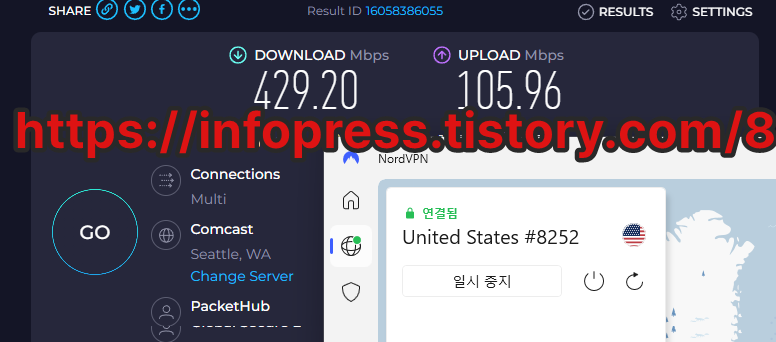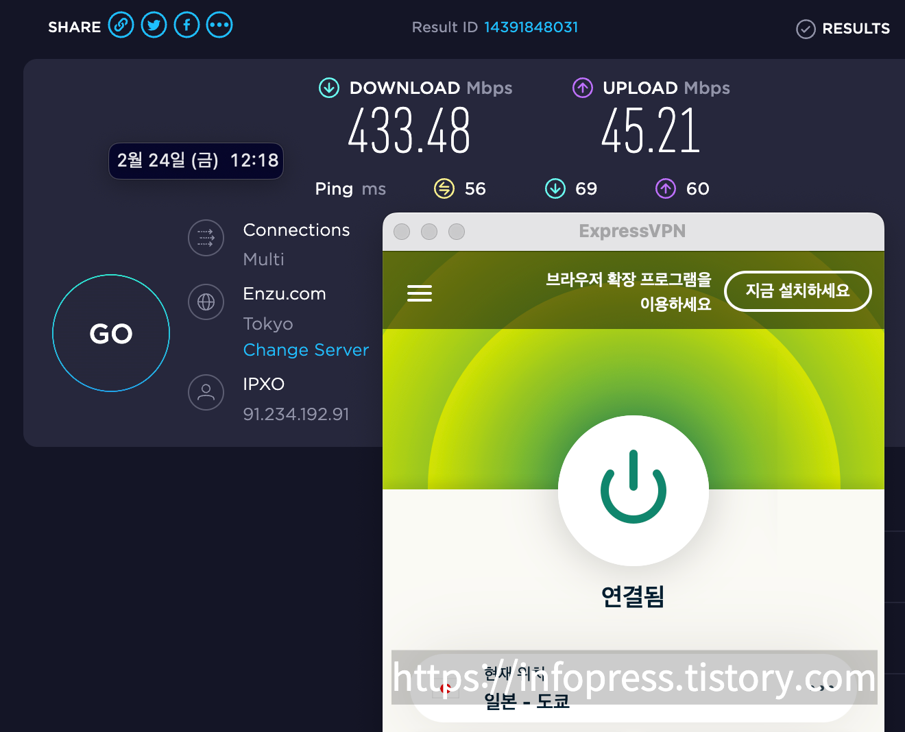 ExpressVPN 속도 테스트 (*2024년 업데이트 따로 하지 않겠습니다 위의 노드랑 엎치락 뒤치락해요.)