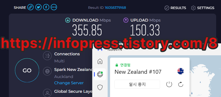 뉴질랜드 : 355.85Mbps / 150.33Mbps